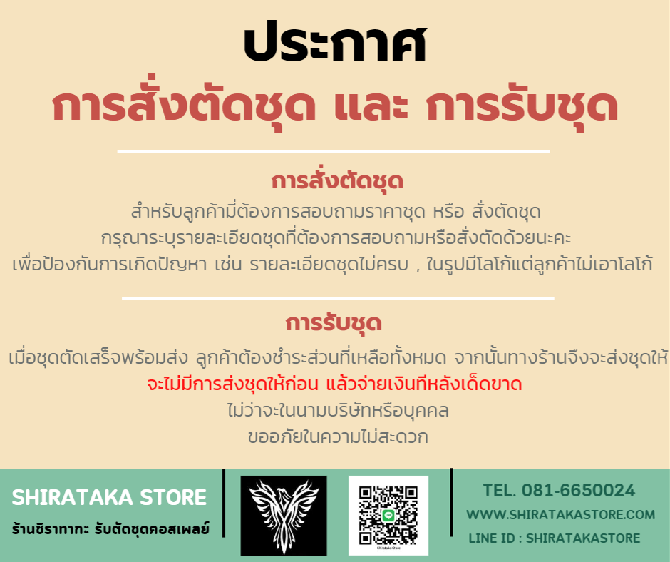ยินดีต้อนรับเข้าสู่ SHIRATAKA STORE : ร้านรับตัดชุดคอสเพลย์